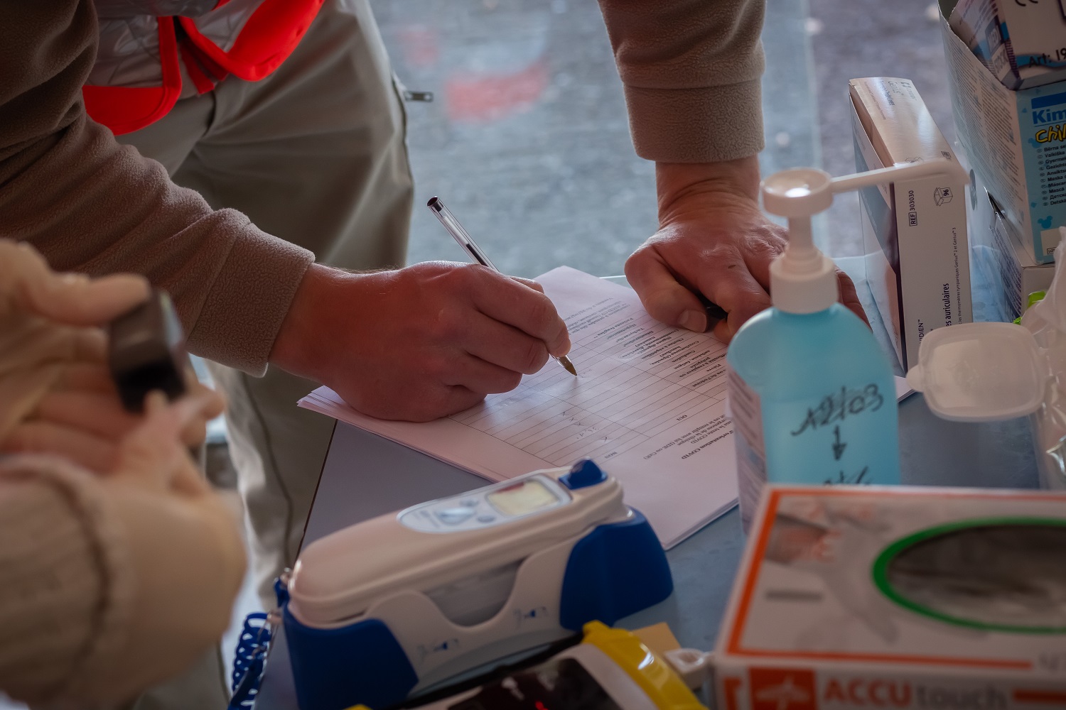 Avec la pandémie liée au Covid-19 est arrivé le besoin de renforcer les services d’urgences, ainsi, c’est plus de trente bénévoles qui se sont rendu.e.s pendant sept mois à la clinique du Renaison dans le secteur de Roanne. En quelques heures, un dispositif d’accueil des urgences a été mis en place par nos équipes pour assurer la sécurité du personnel et des patients de la clinique. Via la seule entrée du bâtiment, le public devait se présenter à un.e bénévole afin que ce.tte dernier.ère puisse écarter toute suspicion de Covid-19. Dans le cas ou la personne présentait un ou plusieurs symptômes de l’infection, elle était orientée par nos bénévoles vers une entrée adaptée permettant la sécurité de tou.te.s.